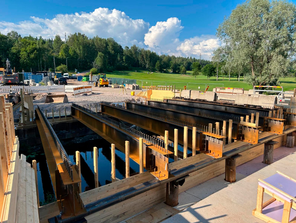 Sillan teräsrakenteiden asennus.